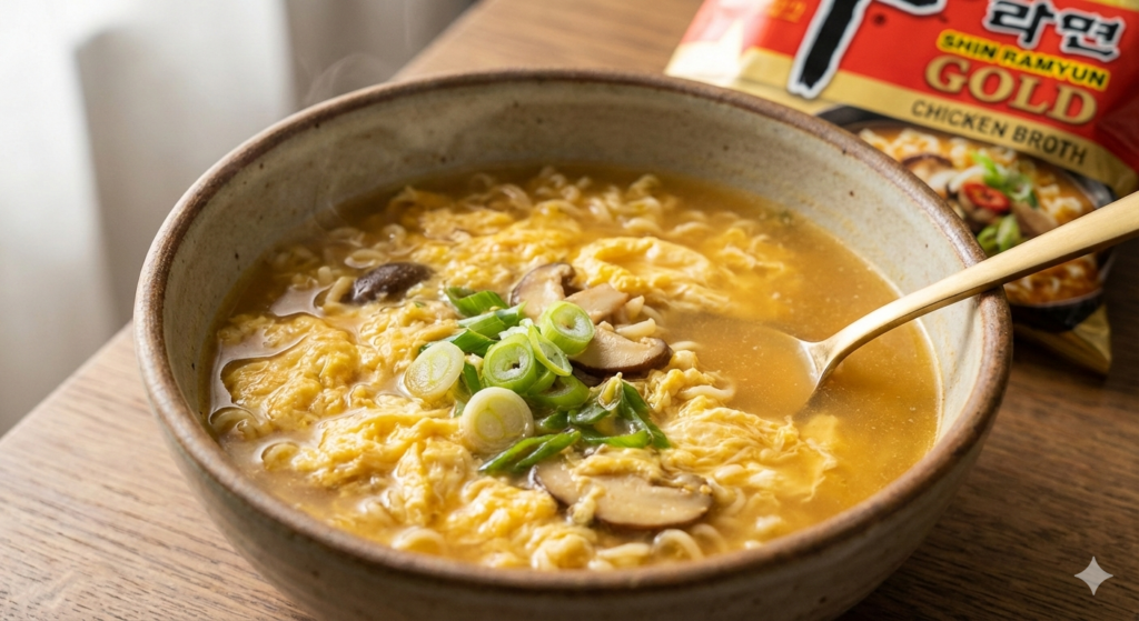 한입 먹었을 때 느껴지는 첫인상은 ‘부드러움’입니다. 소고기 베이스인 오리지널 신라면이 칼칼하고 묵직하다면, 골드는 닭육수 특유의 감칠맛이 돌면서 국물이 훨씬 깔끔합니다. 마치 잘 끓인 닭개장에 라면 사리를 넣은 듯한 고급스러운 맛이 납니다.
