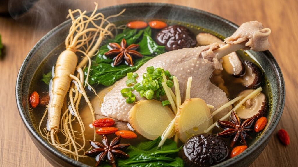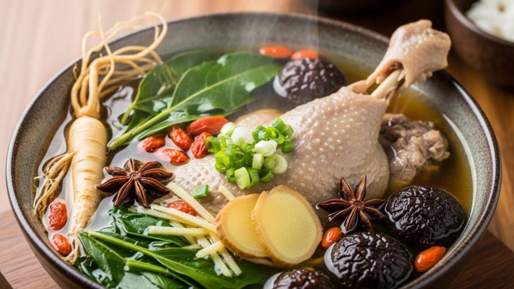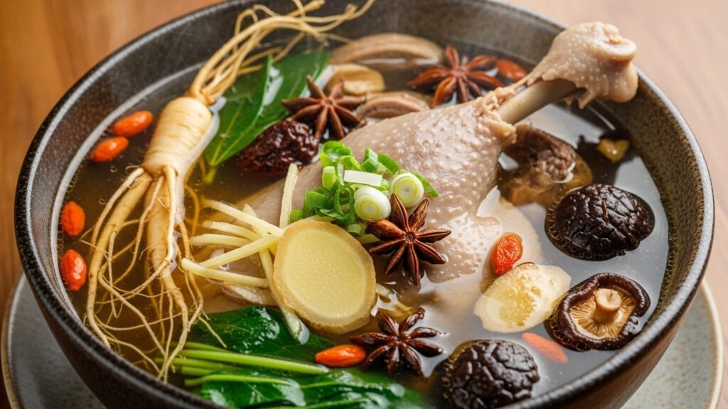 - 한약재 (황기, 엄나무): 기를 보하고 잡내를 잡아주어 영양을 배가시킵니다.