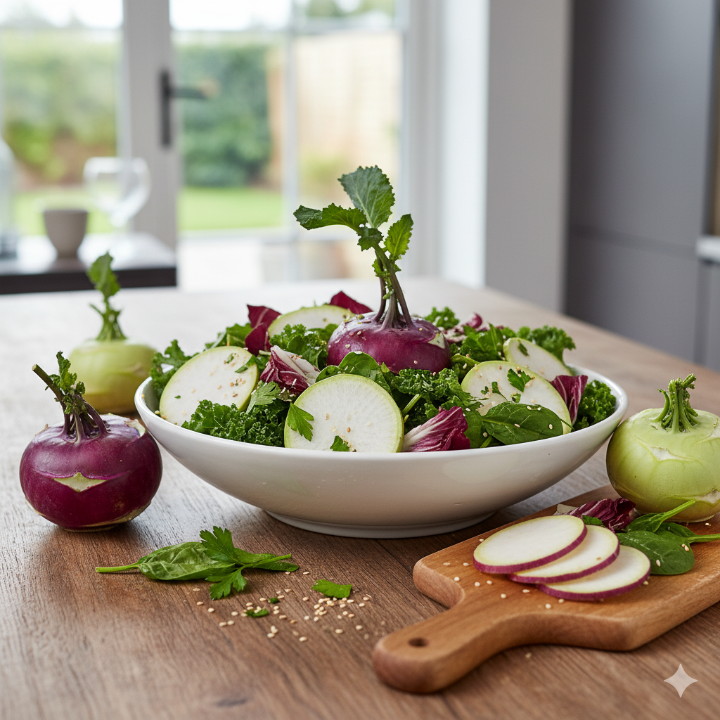 • 나트륨 배출 및 혈압 조절: 콜라비에는 칼륨 성분이 풍부하게 들어있습니다. 칼륨은 체내에 쌓인 나트륨을 몸 밖으로 배출시키는 역할을 하여 혈압을 안정적으로 유지하는 데 도움을 줍니다. 짜게 먹는 식습관을 가진 한국인에게는 필수적인 영양소라 할 수 있습니다.
